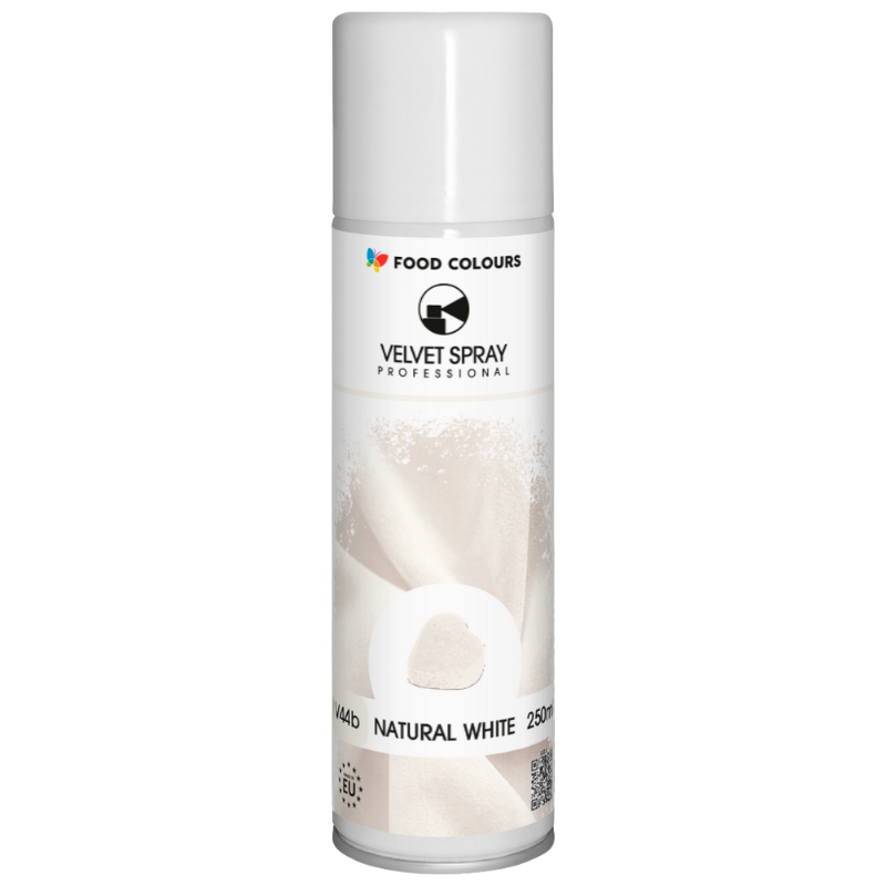 Velvet Spray Professional od Food Colours, to seria barwników spożywczych o strukturze zamszu przeznaczonych do dekorowania powierzchni wyrobów cukierniczych. Barwniki wytwarzane są na bazie tłuszczu kakaowego i umieszczane w pojemnikach pod ciśnieniem. Pozwalają na precyzyjne pokrywanie strukturalnymi kolorami powierzchni wyrobów cukierniczych. Zamsze spożywcze w wygodnej formie sprayu doskonale sprawdzą się do pokrywania zmrożonych powierzchni tortów, musów, monoporcji oraz półproduktów stosowanych do dekoracji. Forma barwników pozwala na precyzyjne pokrywanie dekorowanych wyrobów równomierną warstwą koloru.
