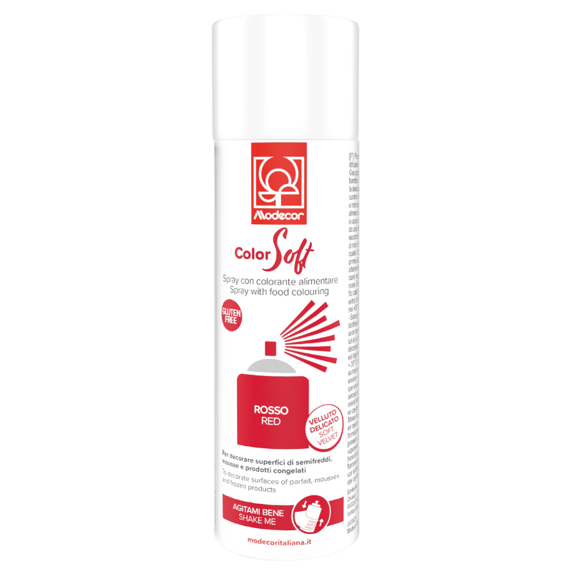 ColorSoft od Modecor, to seria barwników spożywczych o delikatnej strukturze zamszu. Przeznaczone do dekorowania powierzchni wyrobów cukierniczych. Barwniki nie zawierają tłuszczu kakaowego i tłuszczy uwodornionych. Wytwarzane są na bazie tłuszczu palmowego i umieszczane w pojemnikach pod ciśnieniem. Pozwalają na precyzyjne pokrywanie strukturalnymi kolorami powierzchni wyrobów cukierniczych. Zamsze spożywcze w wygodnej formie sprayu doskonale sprawdzą się do pokrywania zmrożonych powierzchni tortów, musów, monoporcji oraz półproduktów stosowanych do dekoracji. Forma barwników pozwala na precyzyjne pokrywanie dekorowanych wyrobów równomierną warstwą koloru. Ponadto barwniki są bardzo proste w użyciu, należy jedynie pamiętać o ich dokładnym wstrząśnięciu przed nałożeniem oraz o spryskiwaniu powierzchni z odpowiedniej odległości. Optymalna odległość spryskiwania od dekorowanej powierzchni to około 20-25 centymetrów. Paleta aksamitnych kolorów łatwych do dozowania i rozprowadzania. Barwniki są całkowicie bezpieczne do spożycia, należy jednak przestrzegać wytycznych co do ich dozowania.