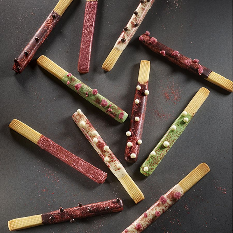 Do stosowania na powierzchni wyrobów cukierniczych (tabliczki czekolady, praliny, makaroniki, monoporcje, ciasteczka, ciasta, torty itp.). Rubinowe drobinki idealnie sprawdzą się do ozdabiania wyrobów z kremem oraz lodów. Dekoracja napojów alkoholowych i bezalkoholowych. Złoto doskonale pasuje zarówno do nowoczesnych jak i tradycyjnych wyrobów cukierniczych.